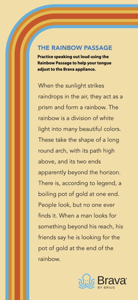 • The rainbow passage to help you adjust to talking with your new braces:
